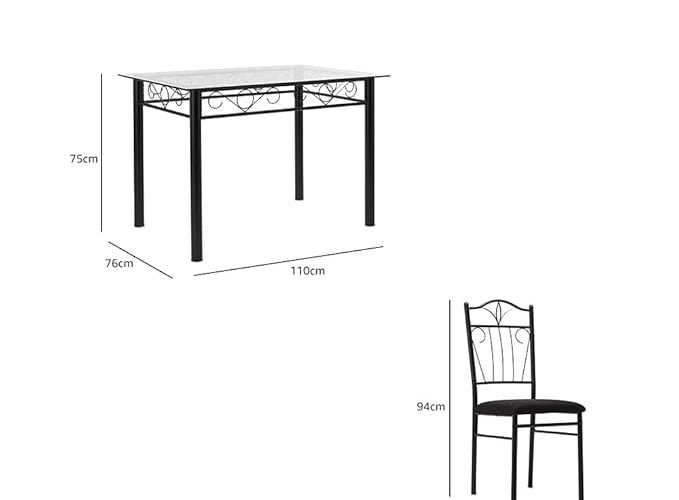Product Dimensions:- Table: Length: 110 cm , Width: 76 cm , Height: 75 cm , Chair: Length: 39 cm , Width: 40 cm , Height: 94 cm