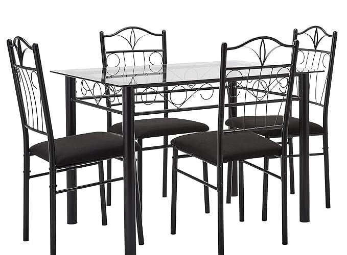 Package Contents: Amazon Brand – Solimo Dorado Glass Top and Metal Dining Set